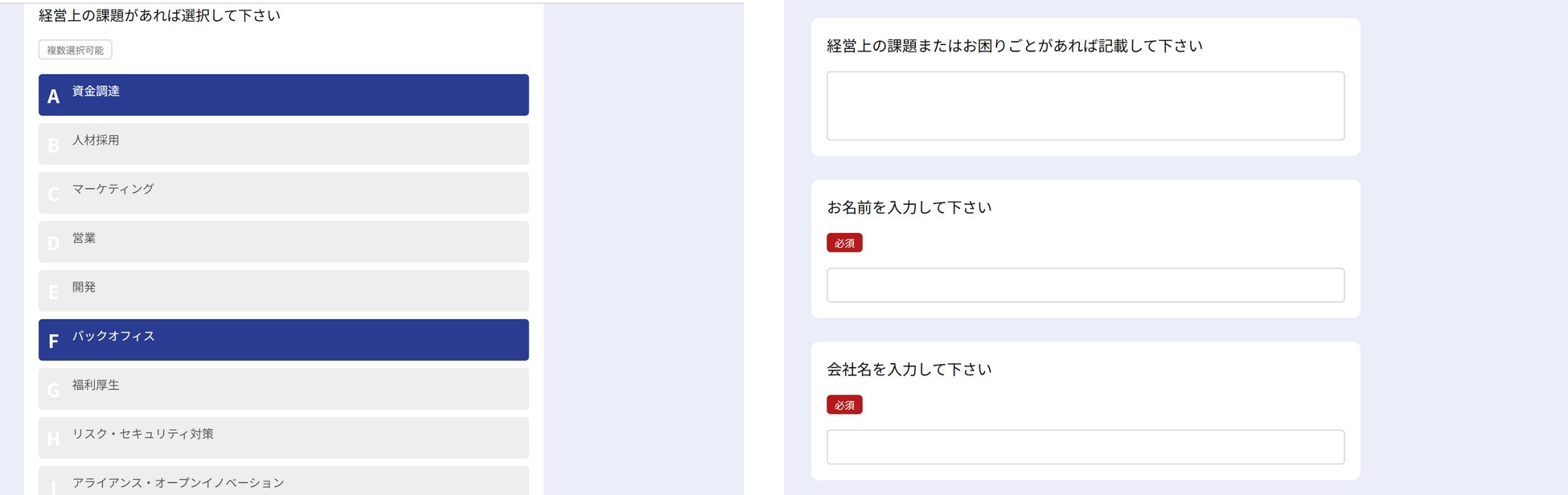 コースを選択すると、各質問が表示されるので、該当する項目を選択することで回答をしていきます。