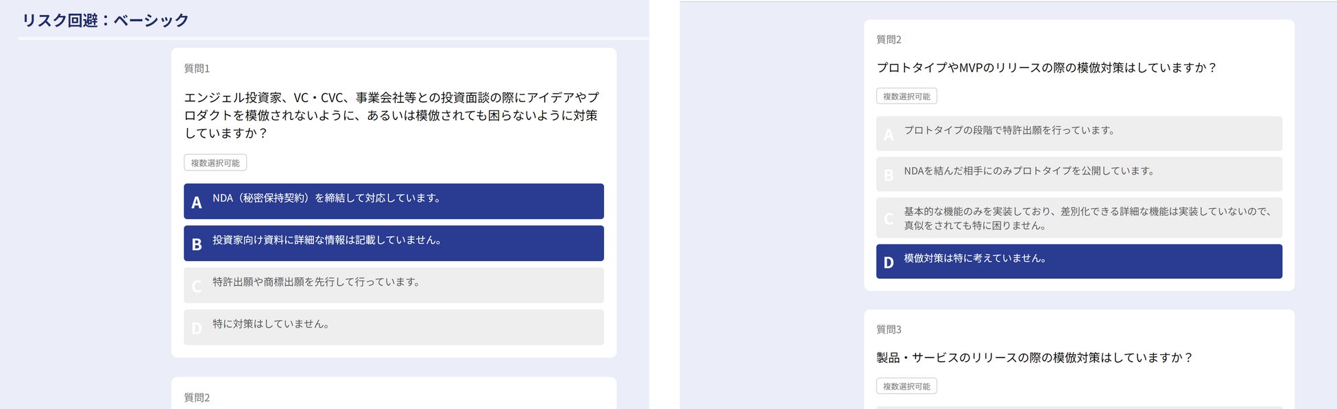 また、スタートアップにおける事業フェーズ(投資ラウンド)に応じて、異なる評価やコメントなどがされるようになっているため、現状の課題をより適切に把握することができます。このように、利用者の特性に応じて適切なフィードバックを行う独自の仕組みについて特許出願を行っています。