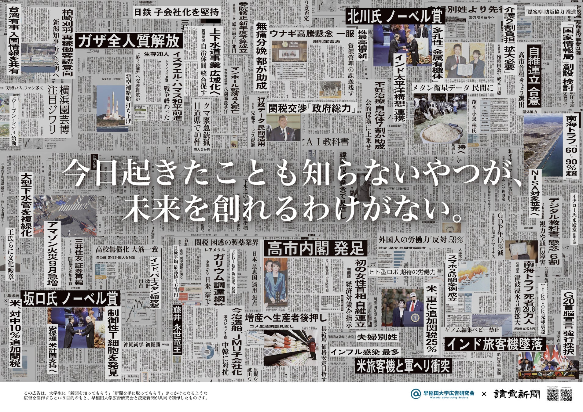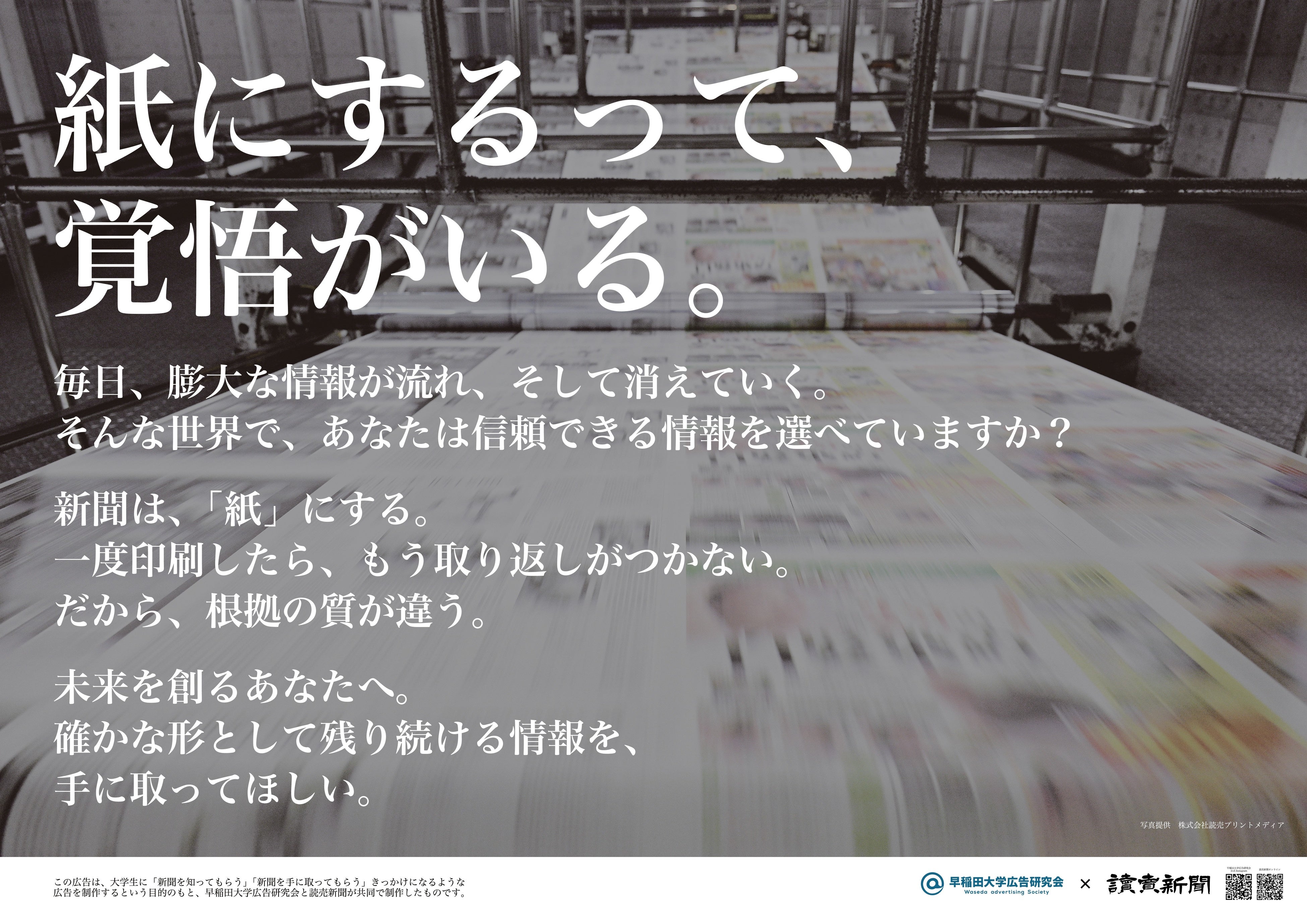 早稲田大学の三大サークルの一つである「早稲田大学広告研究会」の有志メンバーが、読売新聞社をクライアントに広告制作を実施した。