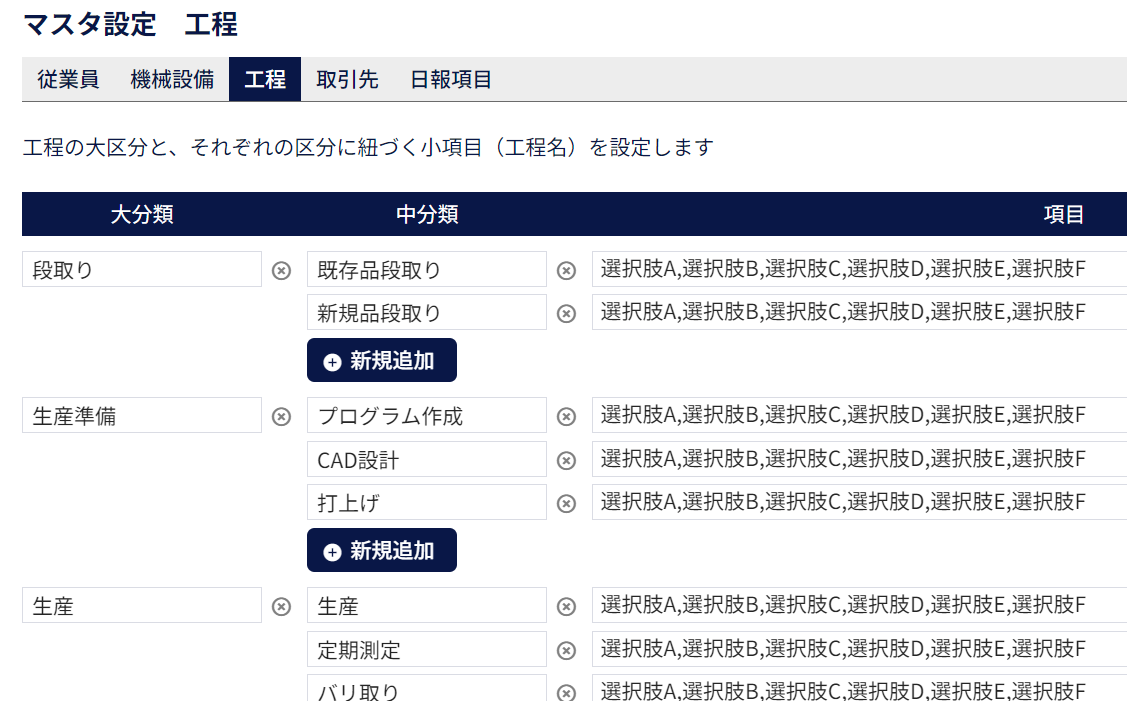 入力項目やマスタを柔軟にカスタマイズすることができるため、これまで使っていた日報シートの項目をそのまま使うことができ、各社の分析ニーズに合った運用をすることができます。