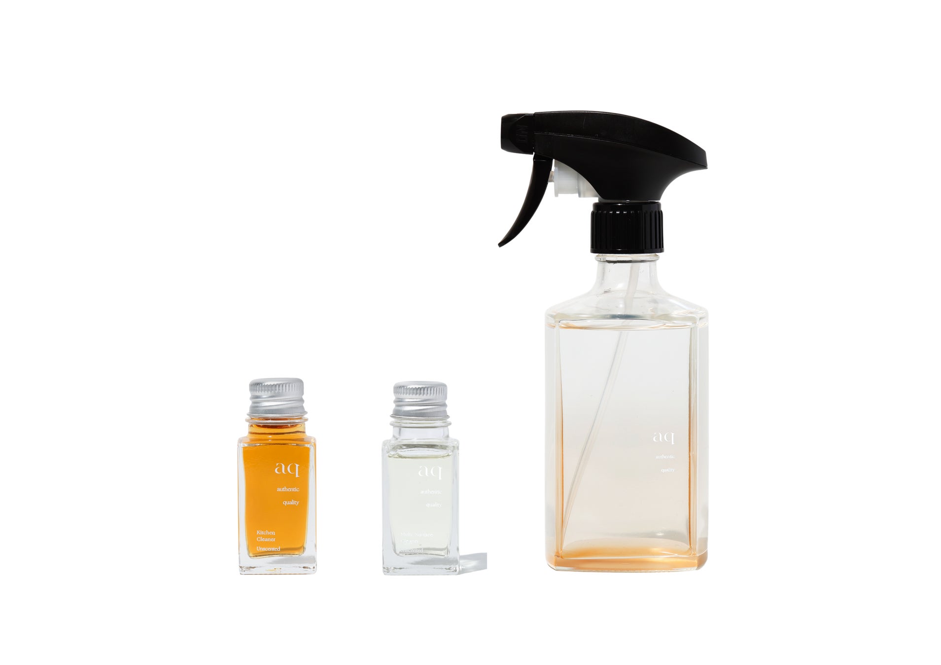 aqは、ガラス製の洗剤用ボトルの中に濃縮洗剤を水道水に希釈して使用する商品を販売しており、お好みのボトルの色の使用やお好きな香りに包まれることで、お掃除をしていることをつい忘れてしまうような新感覚掃除体験を提供しています。日々の掃除や生活を癒しの、前向きな時間に変えていきながら脱プラスチックやCO2削減に気軽に楽しく取り組めるブランドを目指しています。