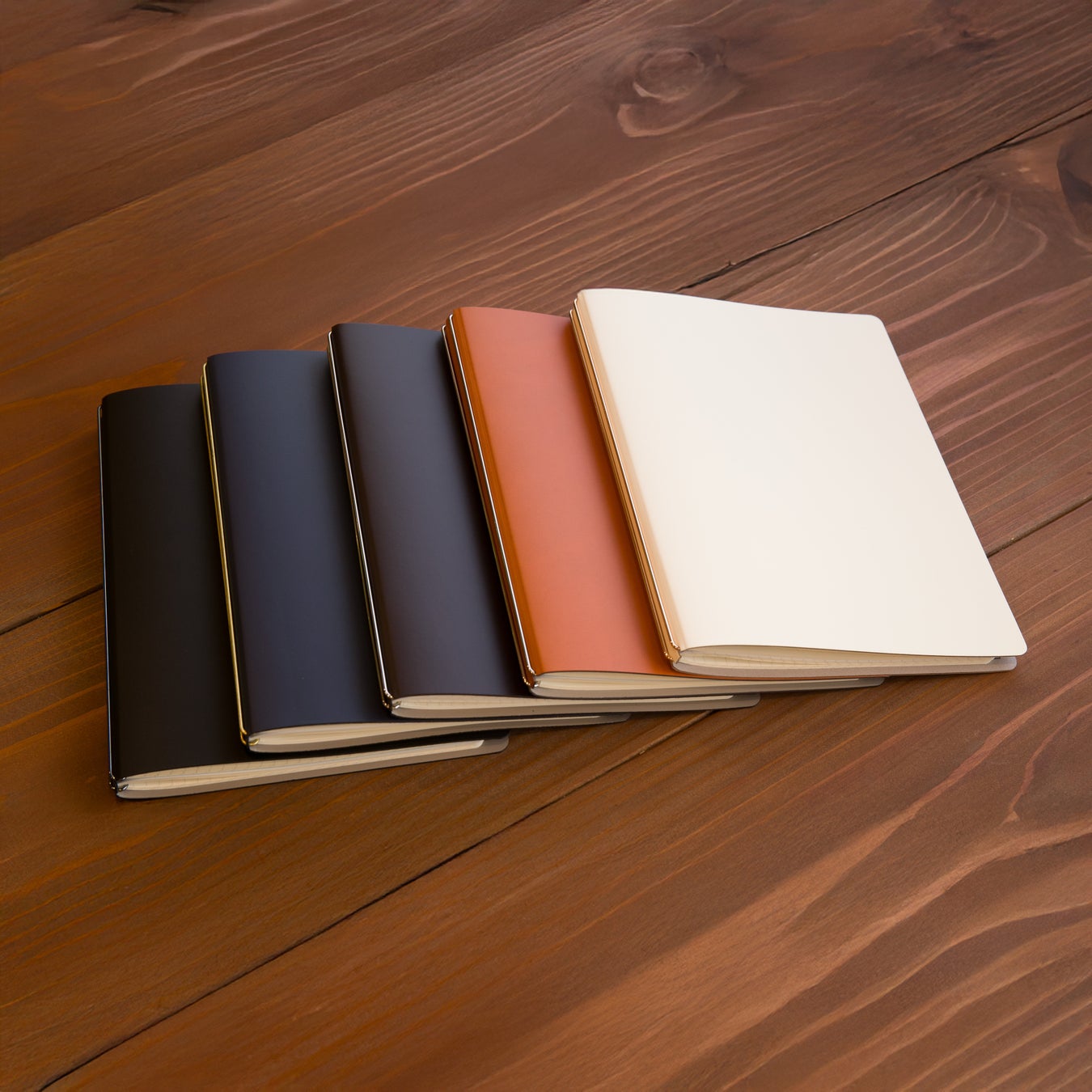 (5)fixieダイアリーノートカバーA5(カバー単体) ¥5,900(税込¥6,490) (表紙カラー×フックバーカラー:ブラック×クロムブラック、キャメル×ニッケル、ホワイト×カッパー) |