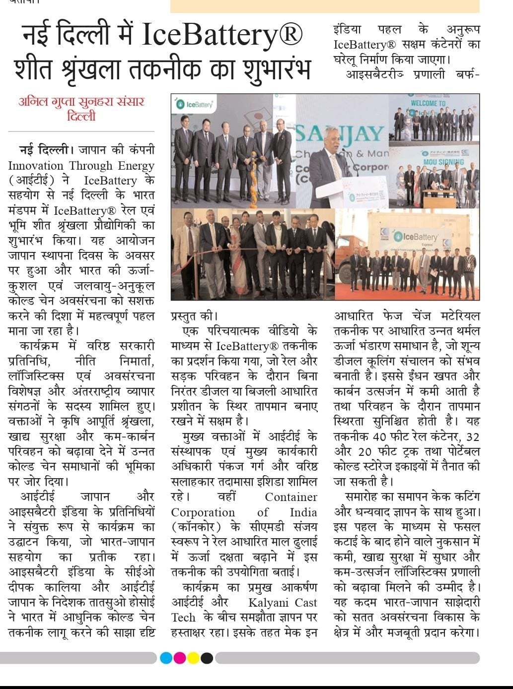 冷却技術を活用した省エネ低温物流ソリューションを展開するアイ・ティ・イー株式会社(本社:東京都千代田区、以下 ITE) は、ICEBATTERY Indiaおよびインド国営鉄道 Container Corporation of India Ltd.(以下 CONCOR) との戦略的連携のもと、ネットゼロ対応型「IceBattery® 鉄道・陸上コールドチェーン技術」をニューデリーにて発表いたしました。
