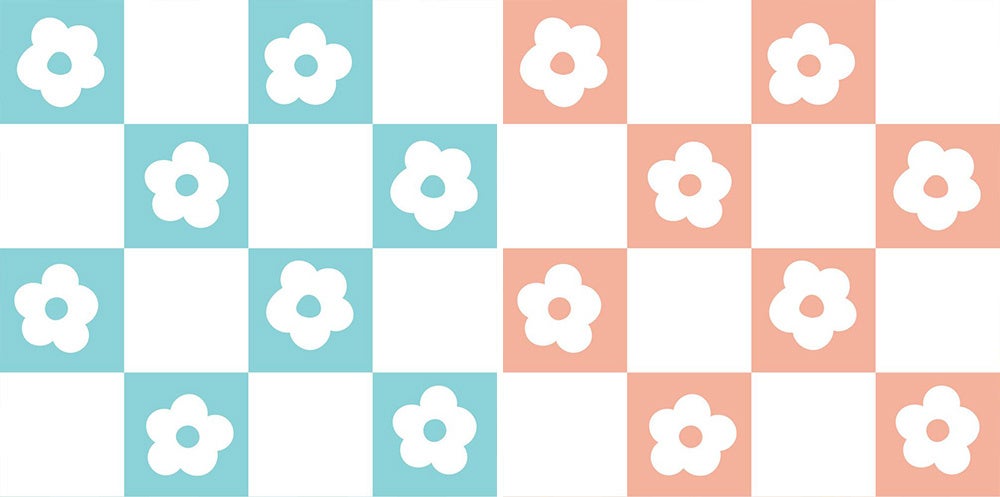 デイジー柄に埋め尽くされたい願望から生まれたデザイン。あえて手描き風のゆるい線で仕上げた格子状のブロックもポイント!