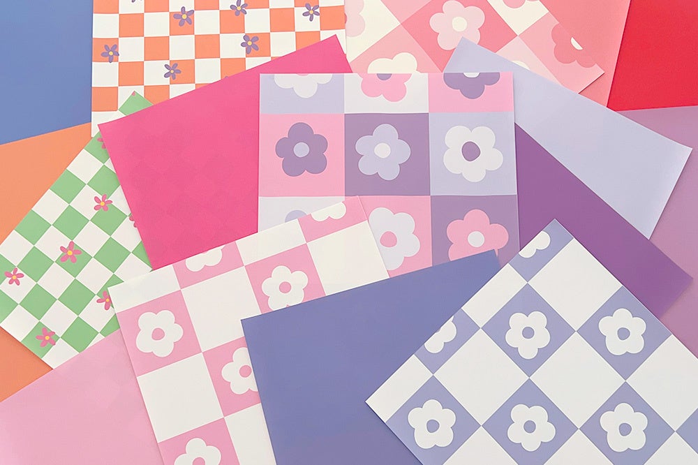 小ぶりのチェッカーデザインに小花柄を散らしてかわいさをプラス。ストリートっぽくなりすぎずにチェッカーを取り入れられる甘辛な万能デザインです。