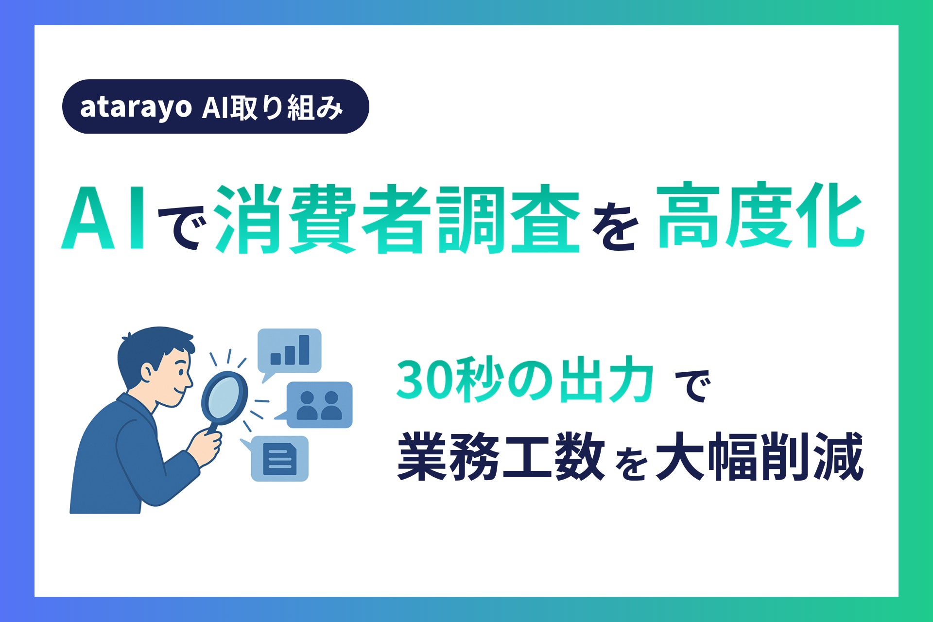 これらの課題を解決するため、atarayoはAI技術を積極的に導入。「消費者調査」のAI化に着手し、調査プロセスを再構築しました。