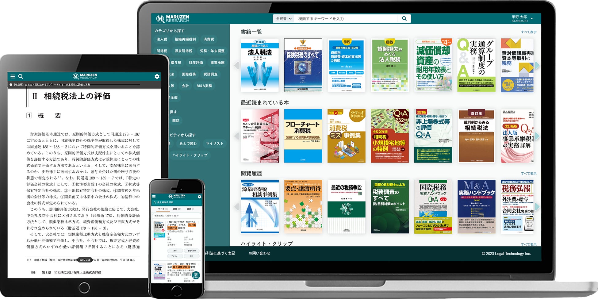 丸善リサーチは専門家や実務家が信頼を寄せる、18社の出版社と提携しており、税務領域を中心に数百冊の専門書籍や雑誌を自由に検索・閲覧することができます。