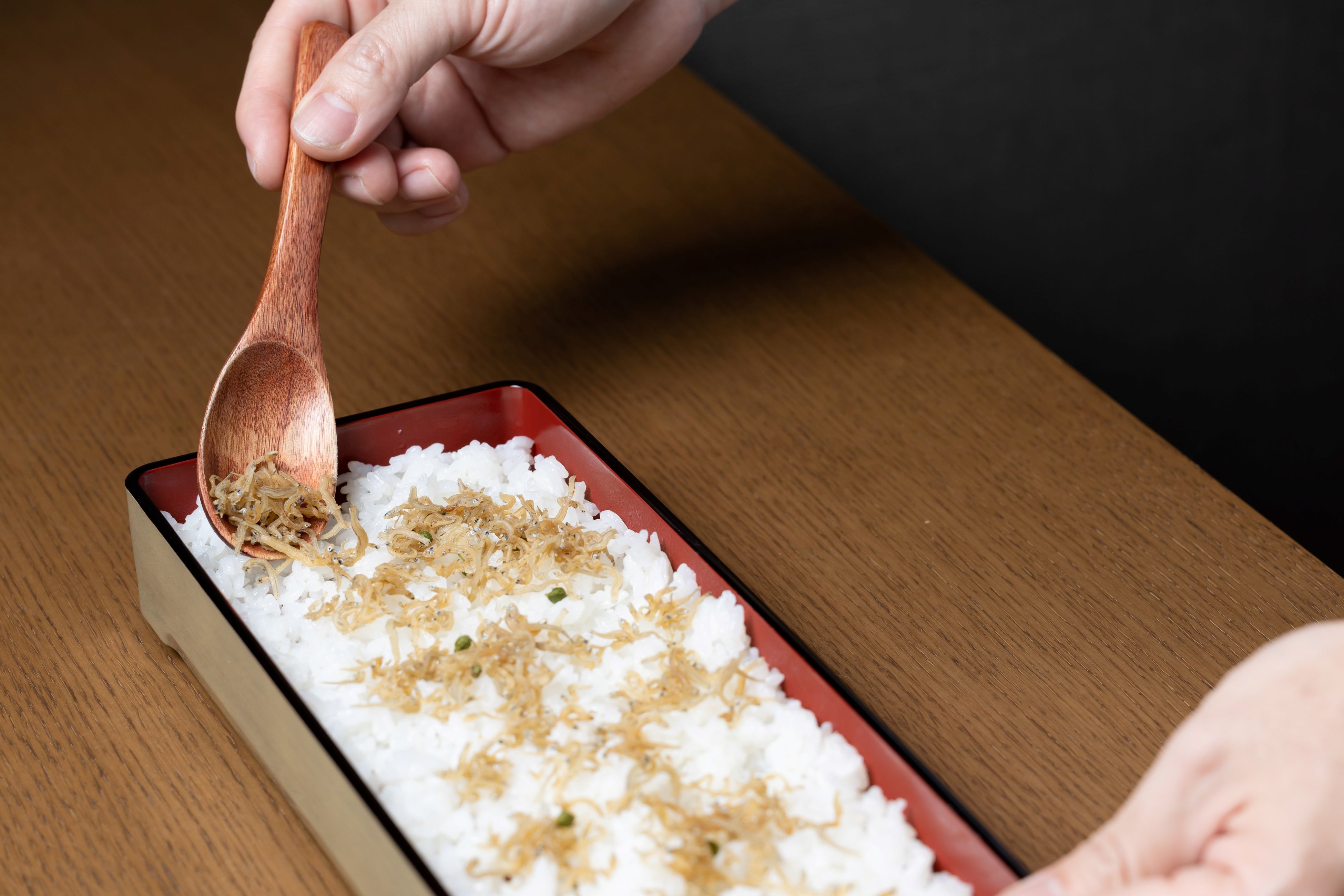 厳選した高級ちりめん山椒を白米にトッピングし山椒の香りをご堪能いただけます。
