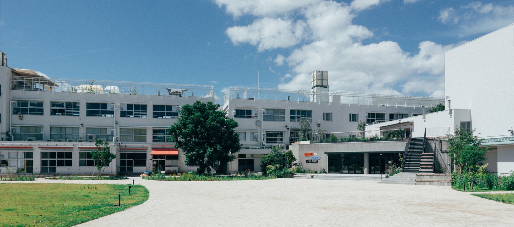 会場のHOME/WORK VILLAGEは、「暮らし(HOME)」と「仕事(WORK)」を見つめ直し、私たちの社会に残された「宿題(HOME WORK)」を紐解いていくというコンセプトのもと、旧池尻中学校を活用してつくられた複合施設です。