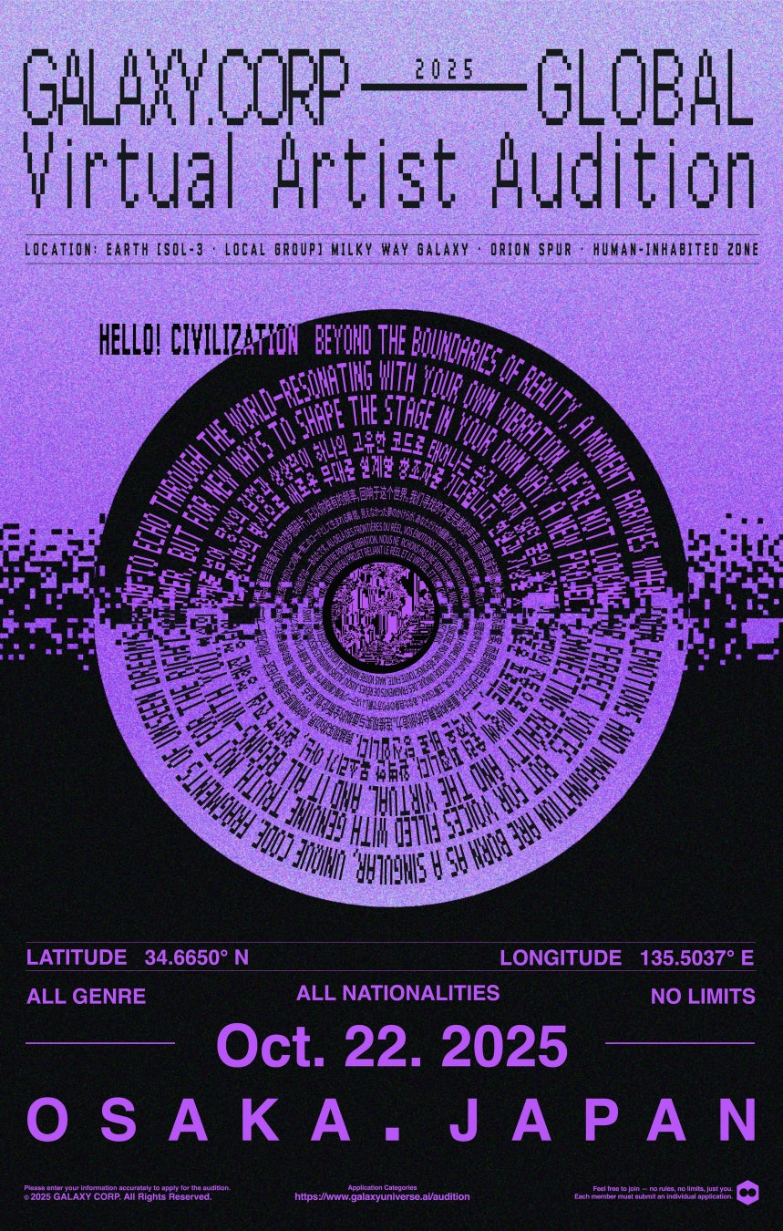 AIエンターテック企業・ギャラクシーコーポレーションは、「2025グローバル バーチャルAIアーティストオーディション in OSAKA」を開催し、世界規模での次世代人材発掘に乗り出します。