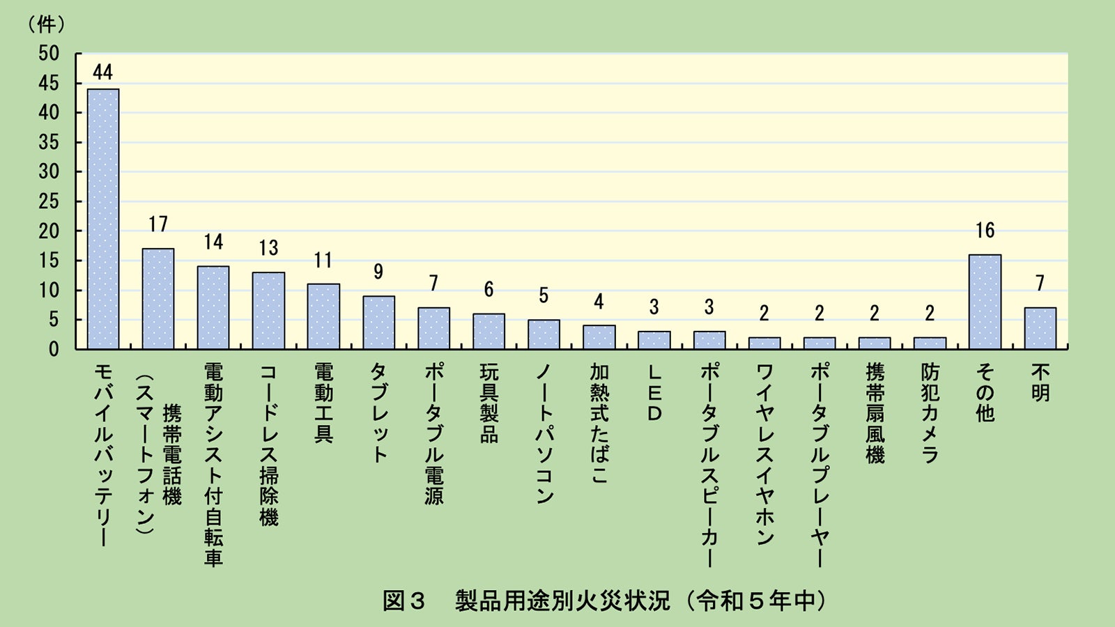 注1 リチウムイオン電池関連火災とは、リチウムイオン電池を搭載した製品(差込みプラグ及び器具コードを除く)から出火した火災をいう。