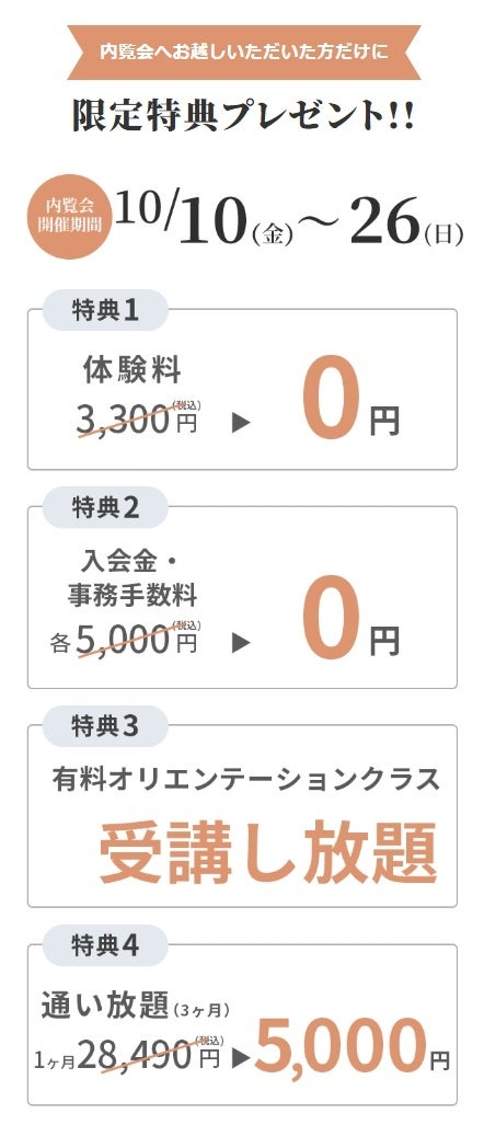 10月10日からはスタジオ見学&無料体験付きの内覧会を開催いたします。