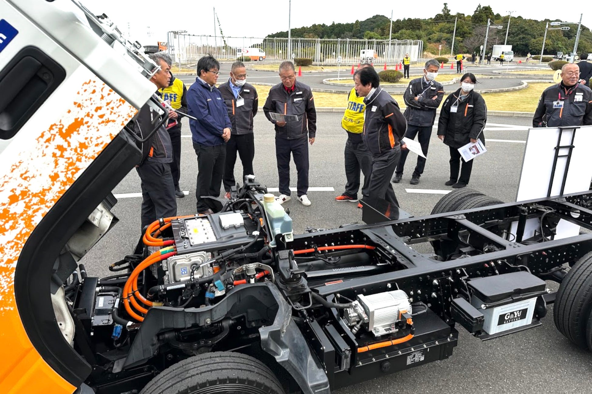 当日は、量産予定車の三菱ふそうキャンター1.5tの走行性能や安全性の検証を行い、SBSグループ各社の幹部の皆様から具体的な評価、並びに、改造EVに対する強い関心や激励の言葉を頂戴いたしました。今後は、年内に型式認証を取得し公道でのモニター使用確認を経て、来春までに量産供給をスタートする予定です。