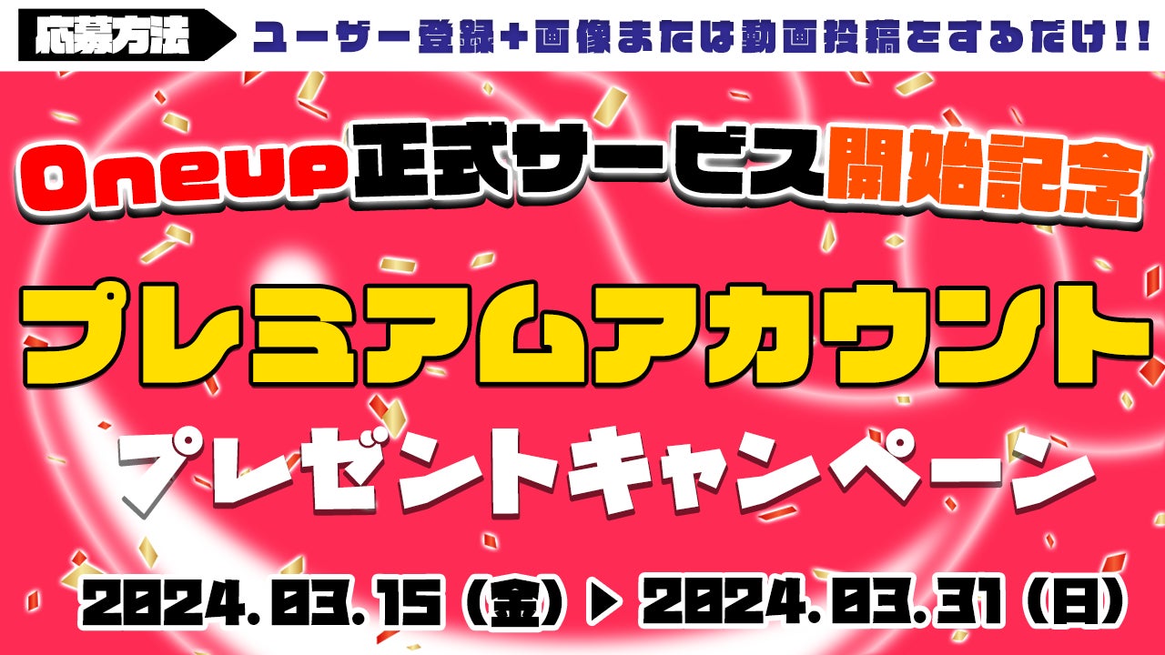 また、正式サービス開始と同時にキャンペーン第1弾として「Oneupプレミアムアカウントプレゼント」キャンペーンを実施いたします。