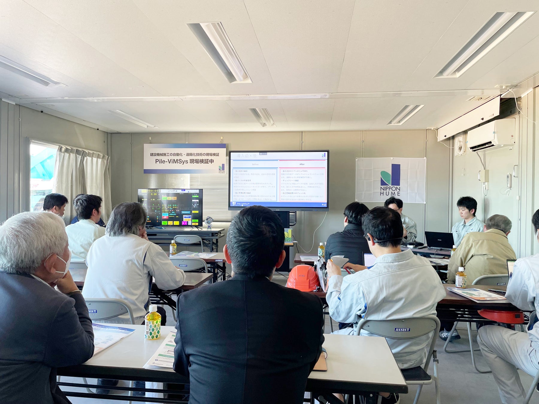 国土交通省「建設機械機械施工の自動化・遠隔化技術に係る現場検証」の実施者として日本ヒューム株式会社が選定され、「Pile-ViMSys(パイルヴィムシス)®」の現場検証を実施しました