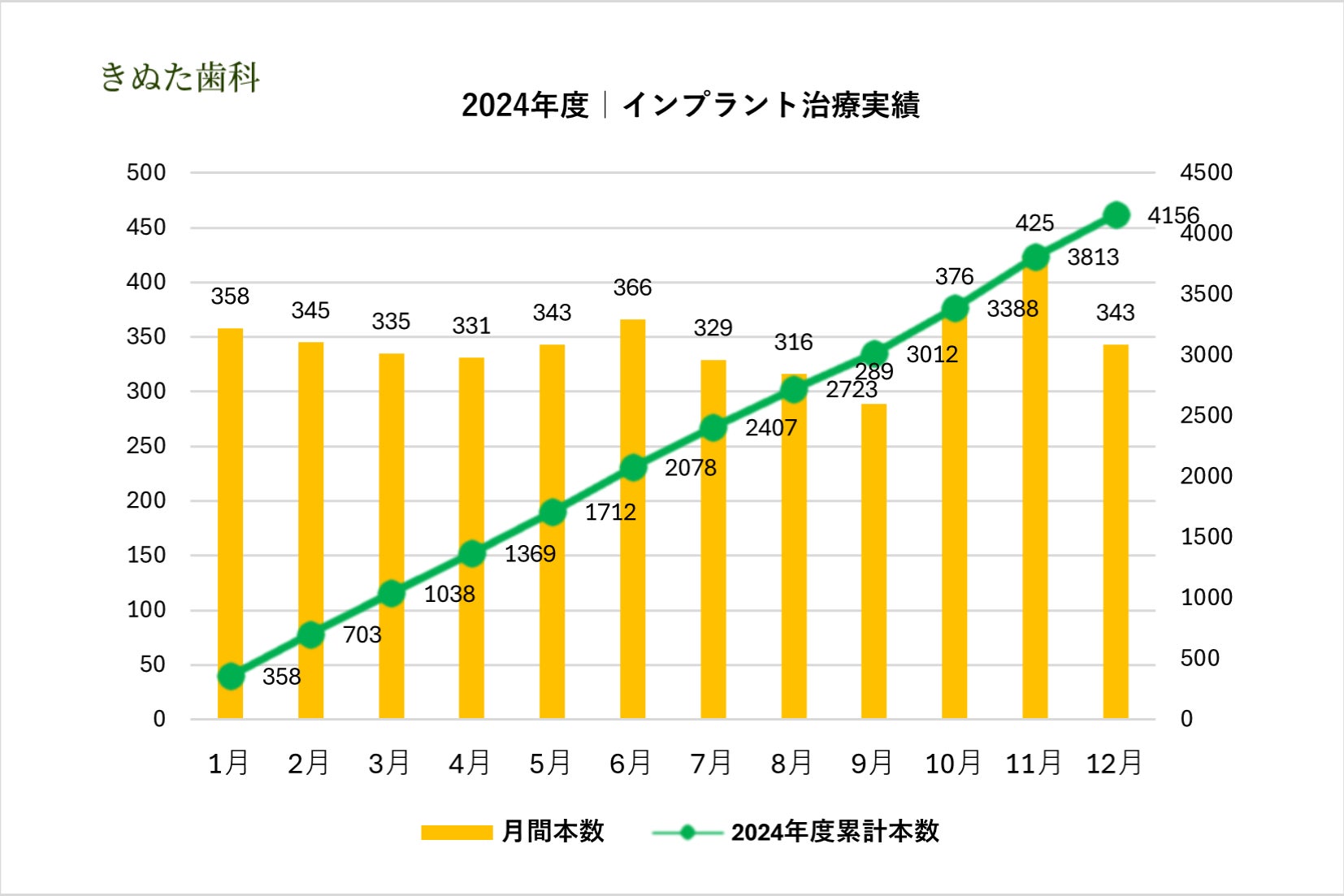 2024年度、きぬた歯科のインプラント治療本数が過去最高の年間4,156本を達成