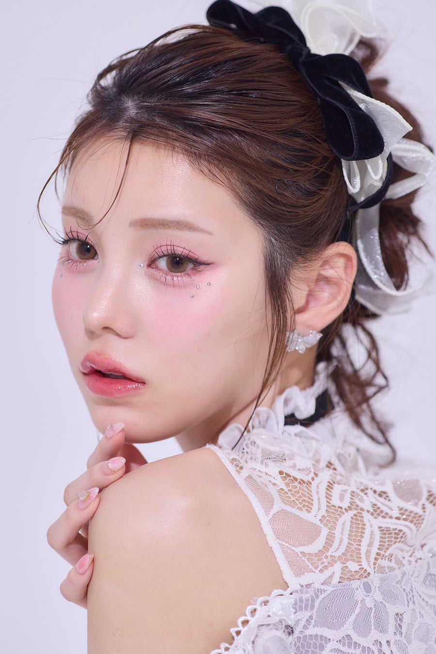 潤いに満ちて内側から光るような透明感の水光肌を丁寧にベースメイクで作り、目を横に長く見せるような独特な引き方のアイライン、韓国メイクの代名詞の束間ロングまつ毛に、ぷっくり涙袋。本場のリアルな韓国メイクから、日本人の骨格や好みに合わせた似合わせ韓国メイクまで、ご要望にアジャストしながらプロのテクニックで華やかな女性らしさを開花させます。
