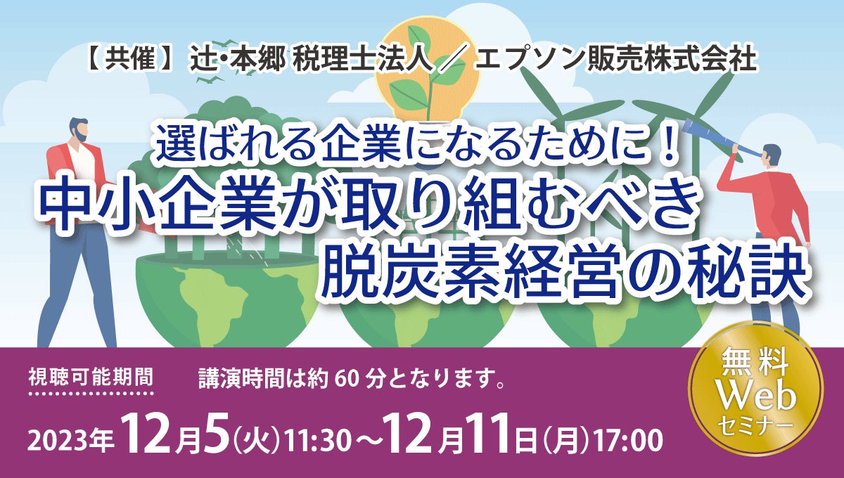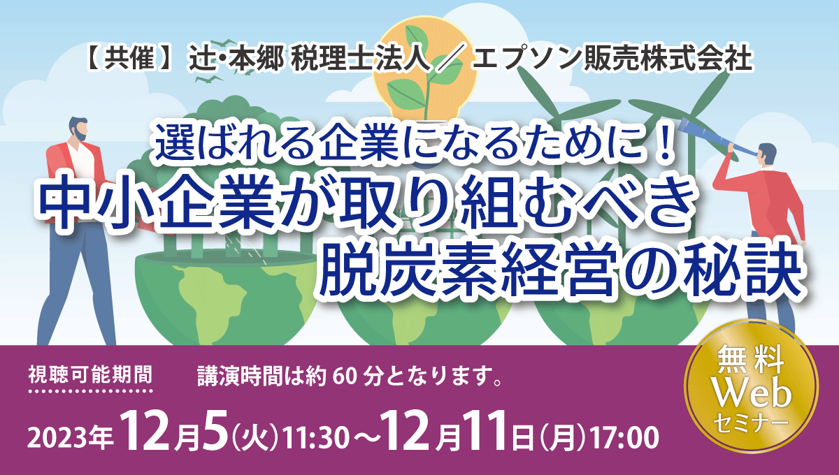 辻・本郷 税理士法人×エプソン販売株式会社共催「選ばれる企業になるために! 中小企業が取り組むべき脱炭素経営の秘訣」セミナーを開催!