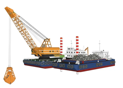 既存のグラブ浚渫船への後付けで自動化を実現します。