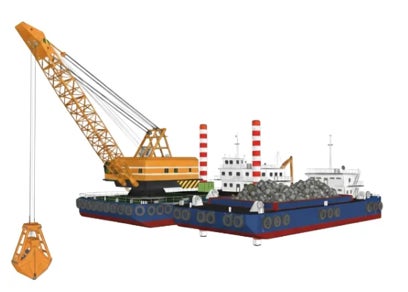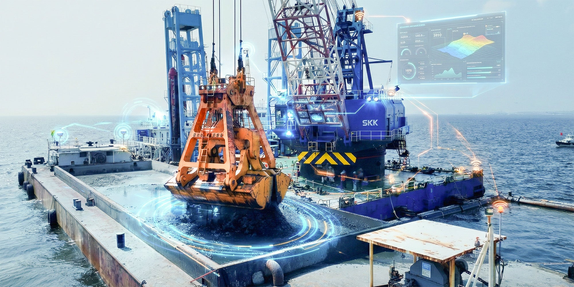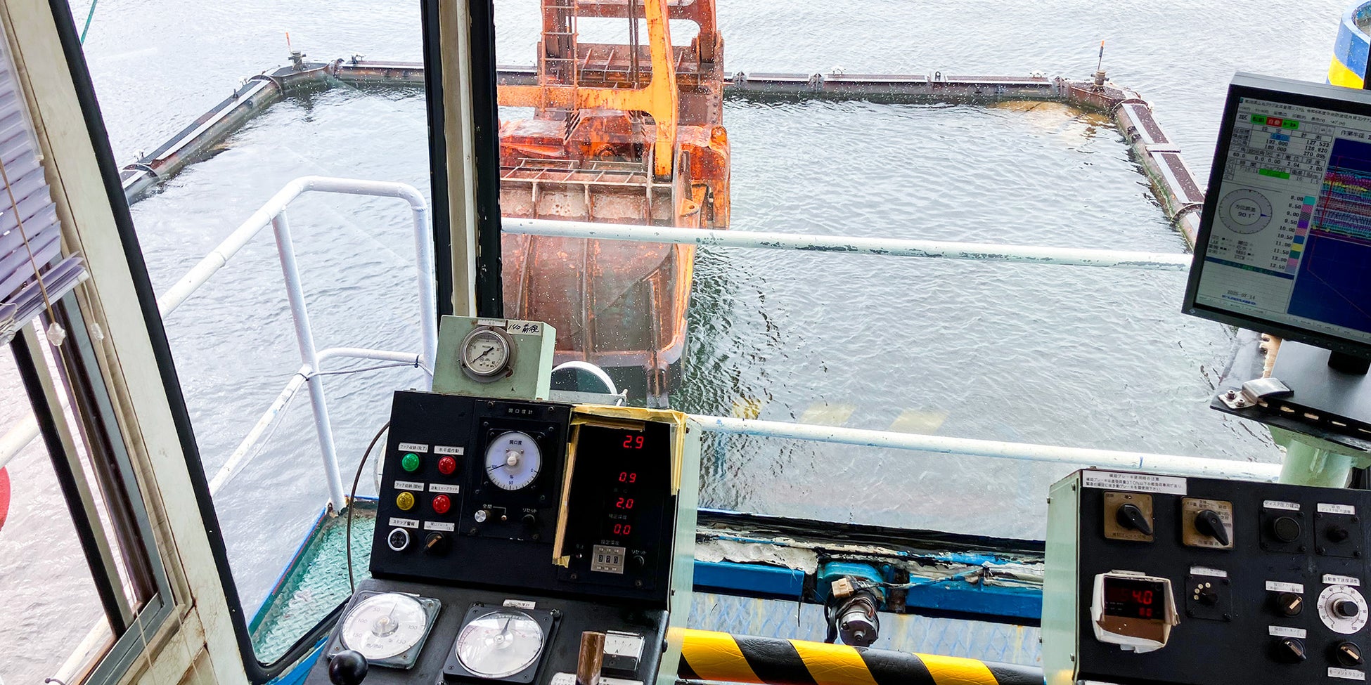 「グラブ浚渫船自動化システム」を開発。遠隔操縦装置と自動制御ソフトでグラブ浚渫船(しゅんせつせん)を自動化