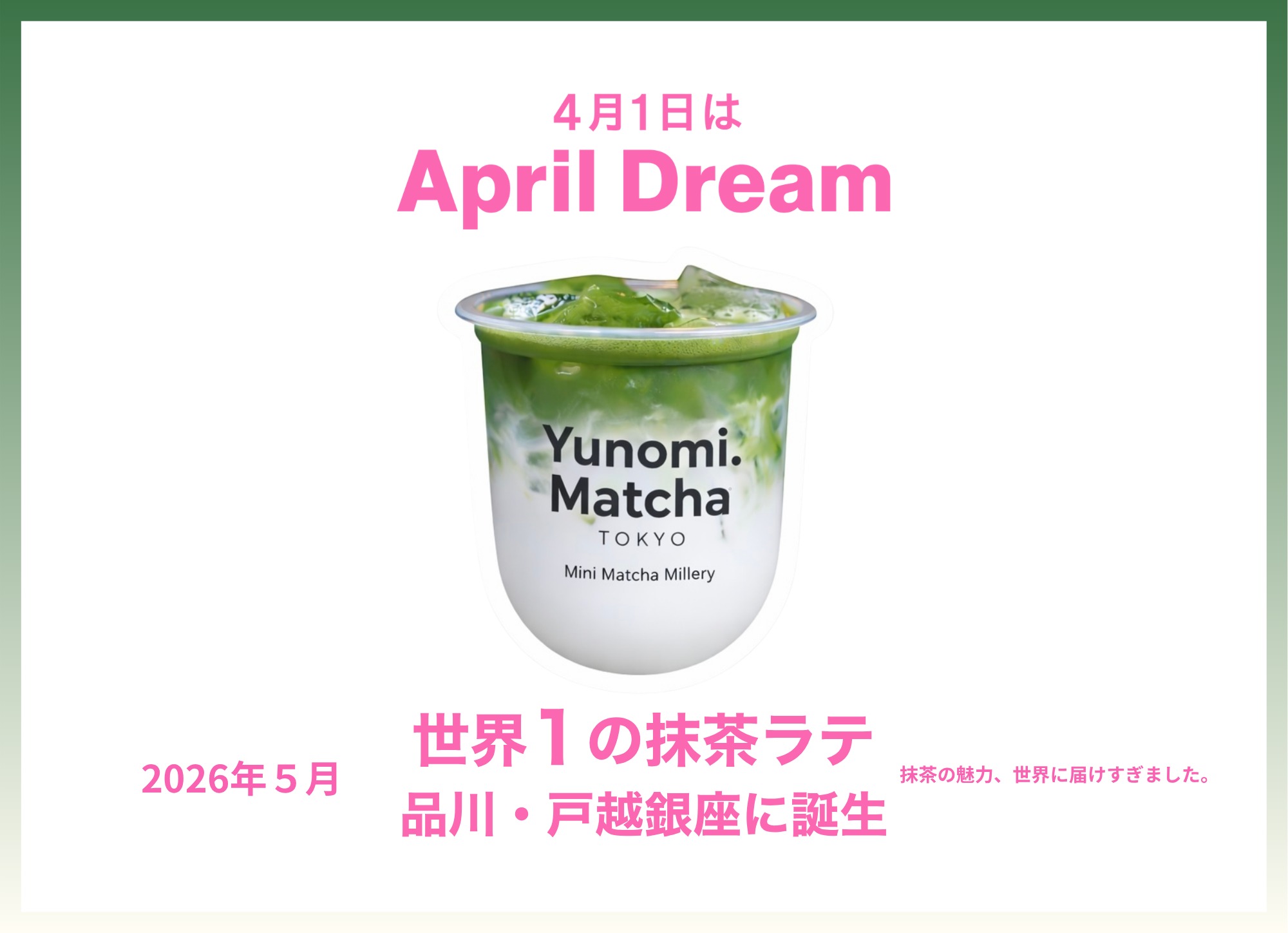 当社は、4月1日を夢を発信する日にしようとするAprilDreamに賛同しています。このプレスリリースは「Yunomi.Matcha」の夢です。