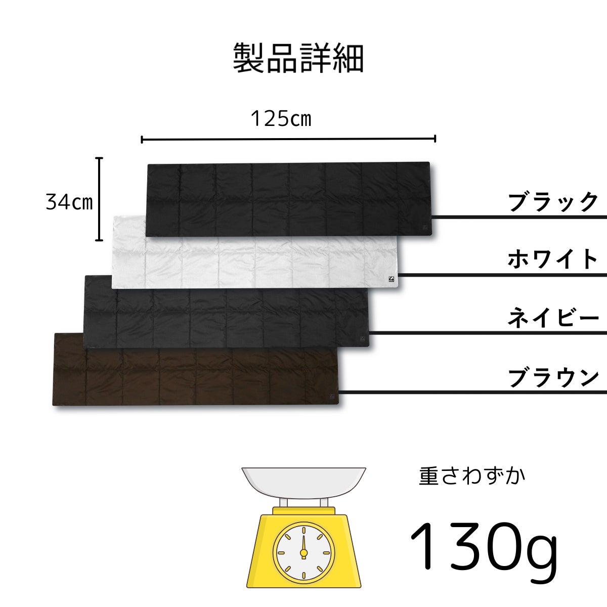 マフラーには様々な素材がありますが、「ウルトラダウンマフラー」はダウンを巻くという新しいコンセプトのマフラーです。弊社では純度90パーセントのホワイトダックダウンに宇宙服素材のエアロゲルを織り込み、軽量で高い保温性を兼ね備えた新しいマフラーをこのほど開発しました。エアロゲルはNASAが宇宙服に用いる断熱素材。一般的な保湿素材と比べて軽量で熱伝導率が低いため少ない厚みで高い断熱効果を発揮します。これからの寒い季節に本品はアウトドアではもちろんのこと、スタイリッシュな見た目で通勤通学や街中での着用にも快適にご利用いただけます。
