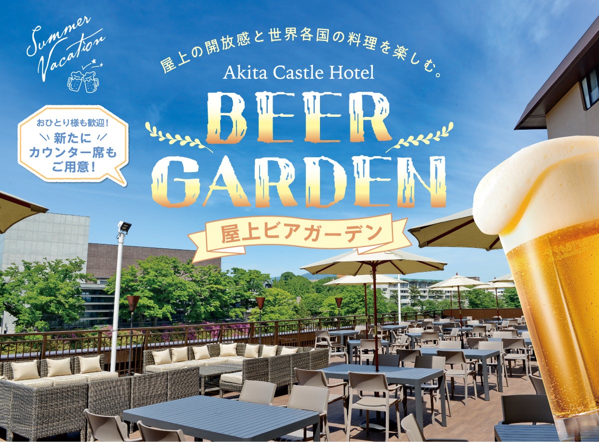 秋田の夏の風物詩として県民の皆様に親しまれている秋田キャッスルホテルの屋上ビアガーデン。これからも進化を続け、皆様が楽しめる空間を目指してまいります。大切な方との時間を、今年もこの場所でお過ごしください。