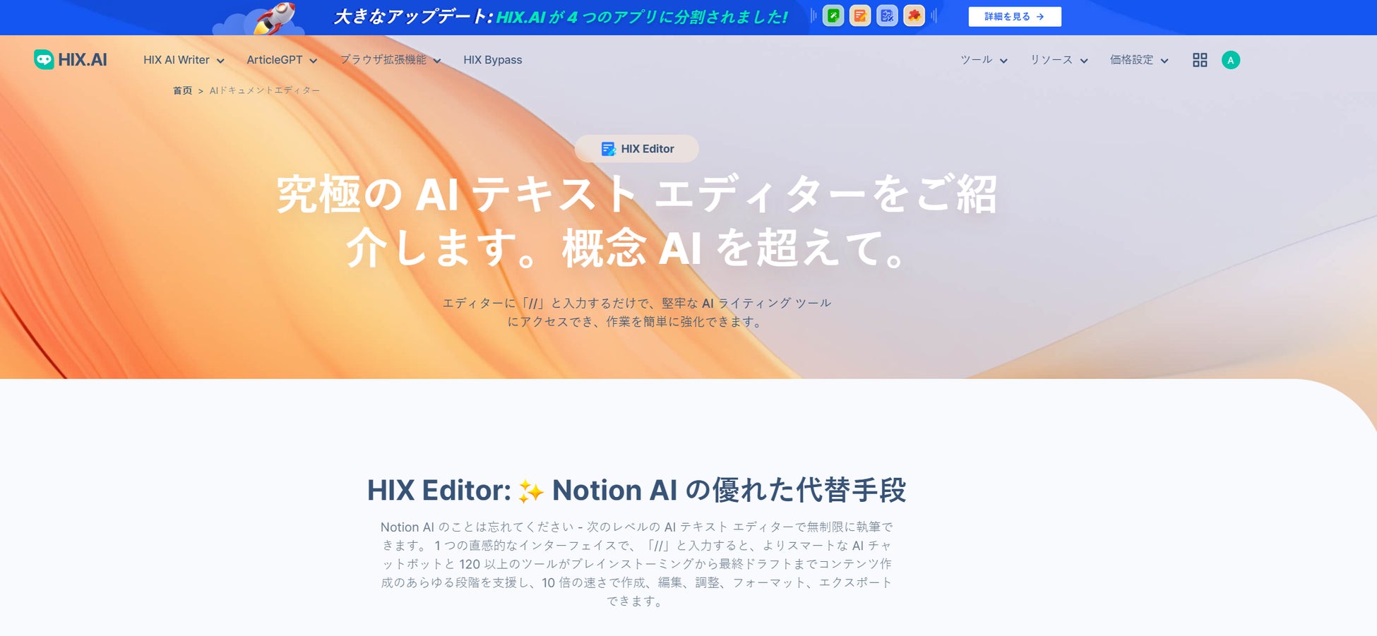 HIXエディタ、創造的プロセスを変革し、Notion AIに対抗する次世代のAIテキストエディタ