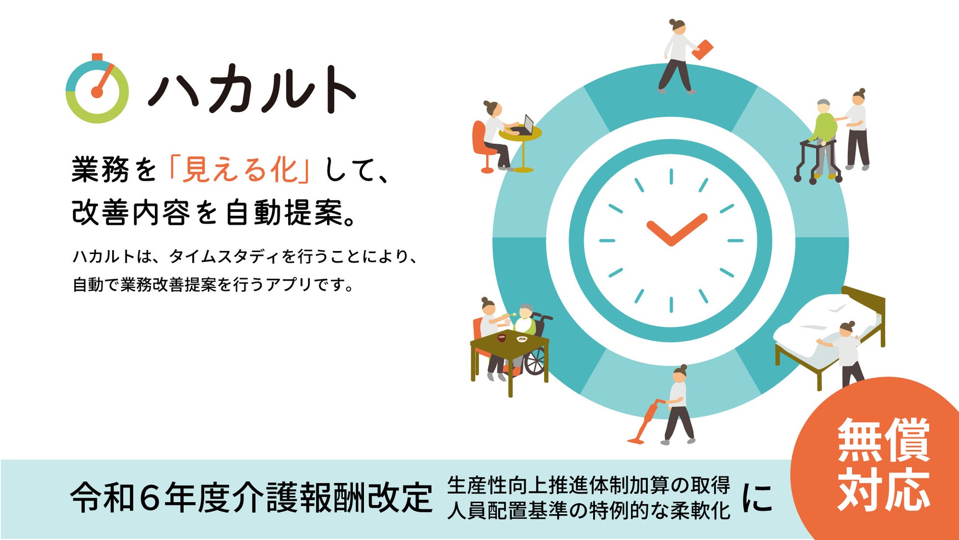 株式会社最中屋(本社:京都府京都市、代表取締役 CEO:結城 崇)は、介護サービス事業所に特化した、タイムスタディ調査・業務改善自動提案アプリケーション「ハカルト」を2024年4月にリリースし、先着100法人に令和6度年中、タイムスタディ調査〜帳票出力機能を無償で提供することを発表いたします。