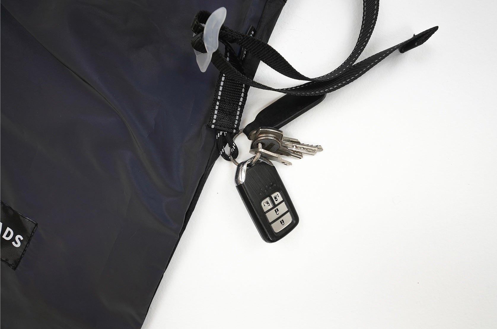 カラビナを使って鍵、ウォーターボトル、ポーチ、チャームなどを取り付けられます。