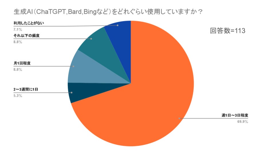 生成AIの使用割合:週1日〜3日程度は69.9%でした。