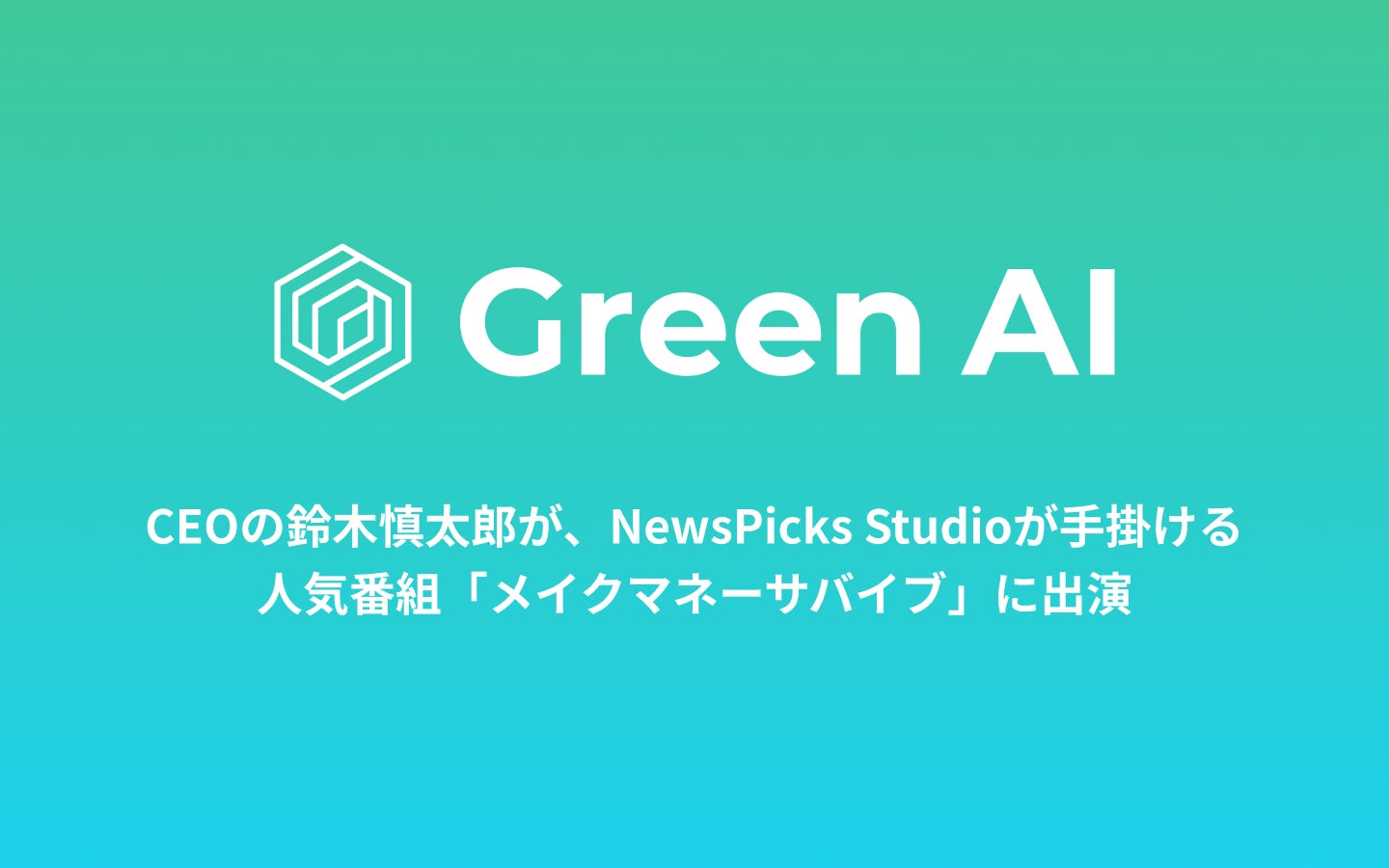株式会社Green AI、CEOの鈴木がNewsPicksの人気番組「メイクマネーサバイブ」に出演
