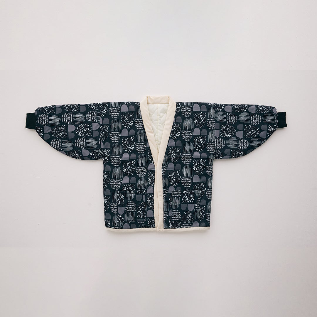 昨年販売をして大好評、即完売をいただきました「リバーシブルハンテン」今年は更に外に着て出かけられるようバーションアップをして登場します!