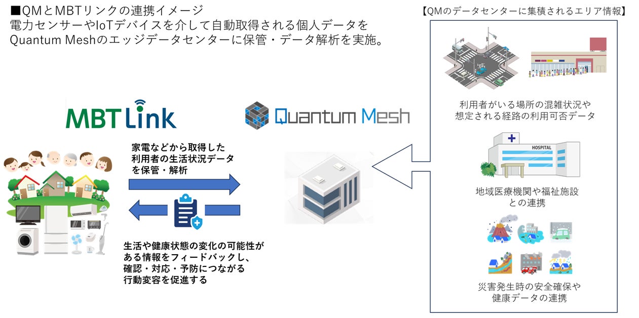 今後MBTリンクは、Quantum Meshのエッジデータセンターを活用しデータ解析・サービス開発等を進めてまいります。Quantum MeshとMBTリンクは本件に係る取り組みを2月より開始。両社は本取り組みを通じて未来のデジタルインフラを築き、データドリブンな社会への移行を加速させてまいります。医療・福祉の分野におけるIoTデータの活用を通じ、利用者一人ひとりが「より豊かで安心な生活」を実現できる持続可能な未来に向けて、新たな挑戦を続けていきます。