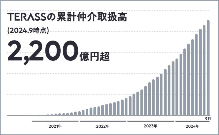 TERASSは全国約650名の優秀な不動産エージェントが、物件を販売する“営業”ではなく、お客さまがよい家探しを行うための一番の味方として、お客さまが将来に向けて安心して購入できる「買うべき金額」を見える化するご提案など、住宅取引に関わる全てのプロセスを中立的かつプロの知識を持ってフルサポートしており、創業以来の累計仲介取扱高は2,200億円を突破しています。