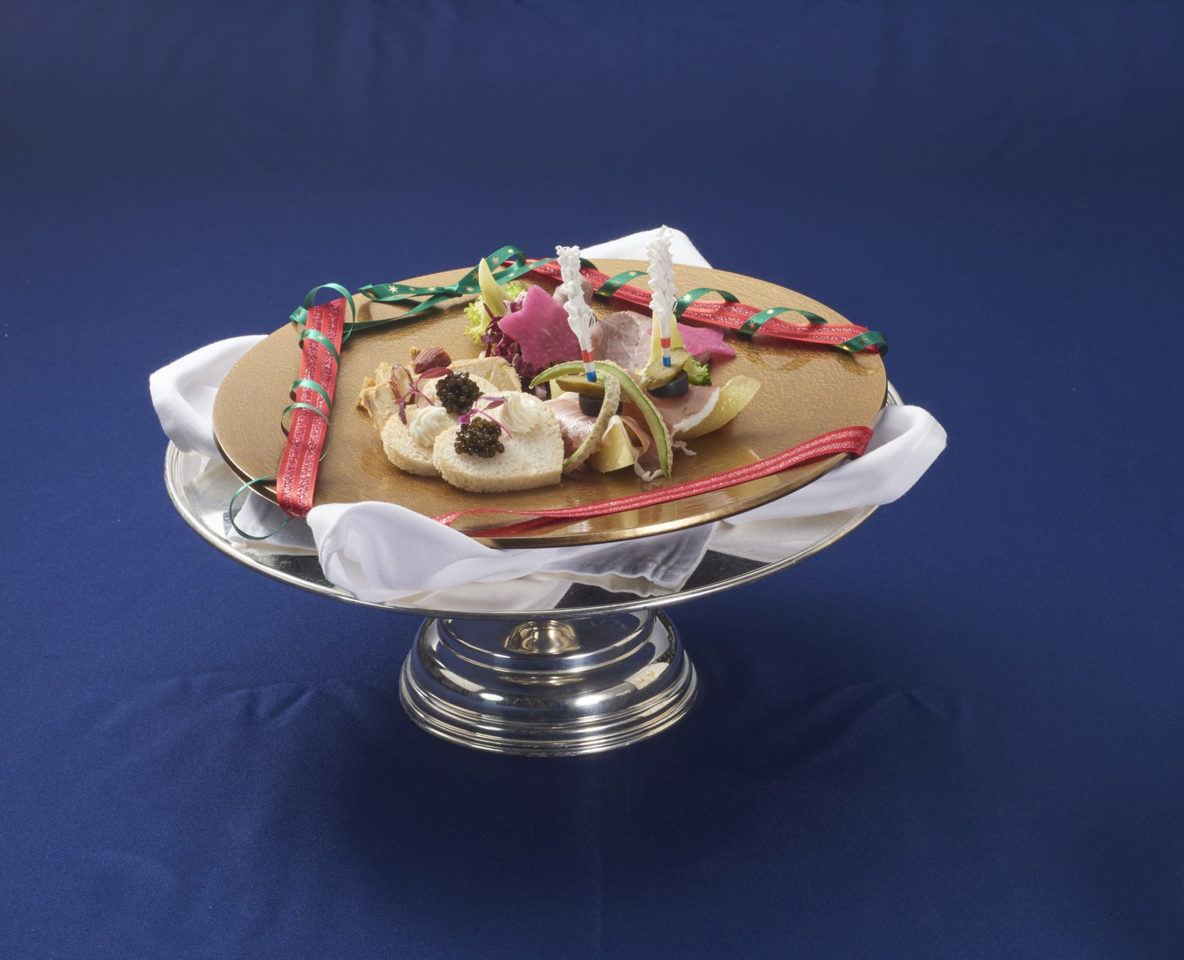 キャビアのカナッペなどを含むオードブルバリエと共に、いつもとは違う雰囲気の中で