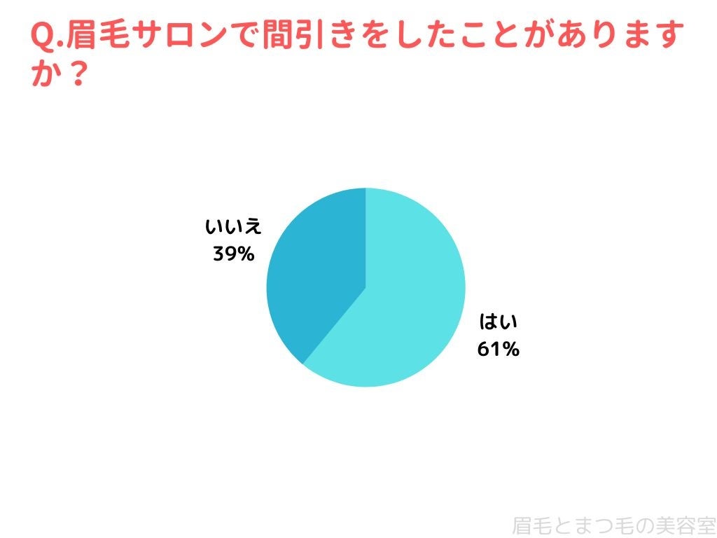 眉毛サロンで間引きを受けたことがある人は「はい(61%)」、「いいえ(39%)」ということが分かりました。