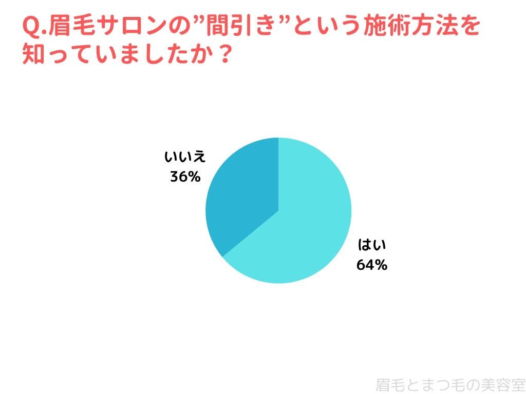 眉毛サロンに”間引き”という施術方法があることを知っていた人は「はい(64%)」、「いいえ(36%)」という結果になりました。
