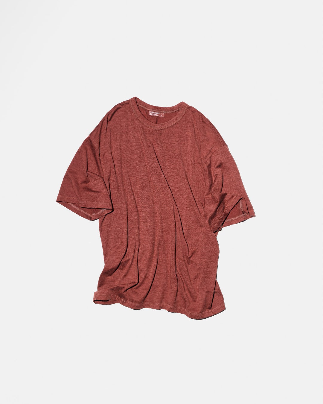 ゆったりとしたシルエットのTシャツは、なめらかな肌触りのメリノウールに、自然由来の染色が生み出すやさしい色合いが調和し、リラックス感のある一着に仕上がりました。色落ちしづらい製法で作られているため、他の製品と同様ご家庭の洗濯機で洗えます。