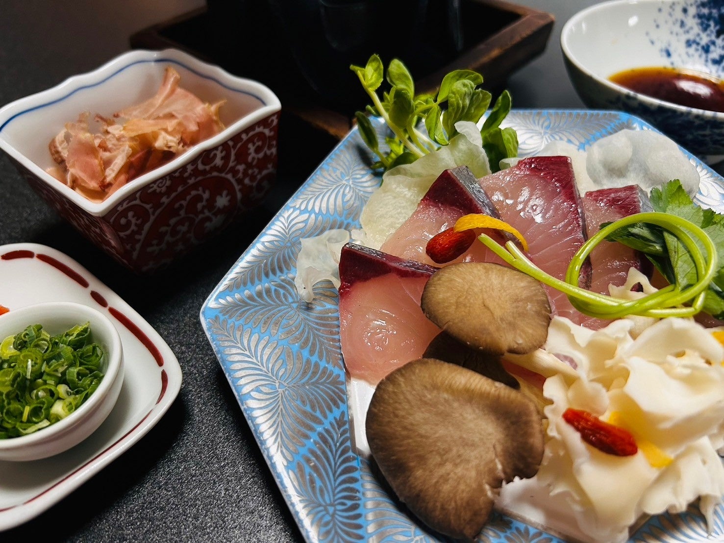 ぶりを、かつお出汁の効いた鍋でしゃぶしゃぶ
