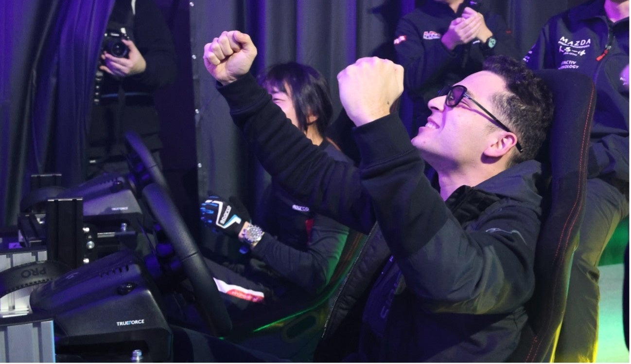 レーシングドライバーとeレーシングドライバーがeモータースポーツでレースを実施。リアルとデジタルの融合でもある対戦ステージ。