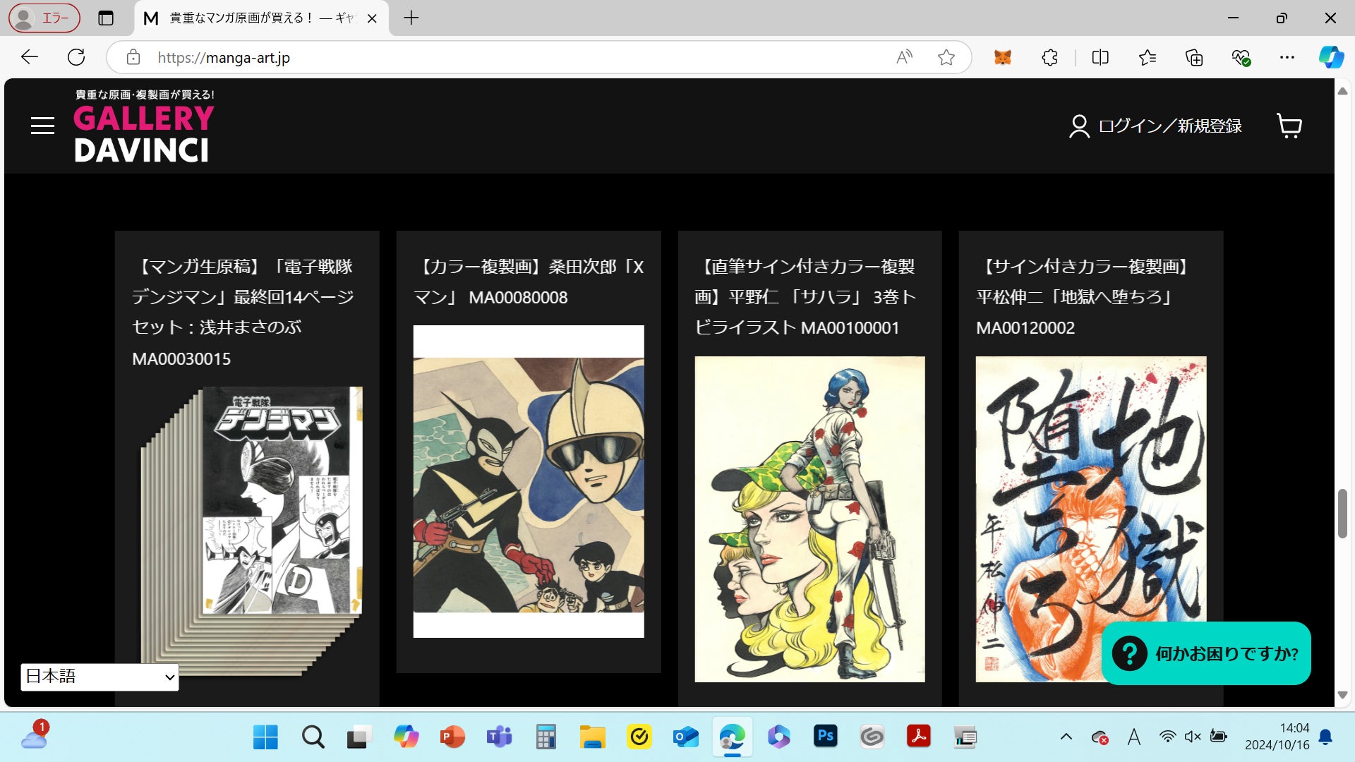 https://manga-art.jp 有名マンガ家の原画(生原稿)が購入できる 専門サイトがサービス開始!