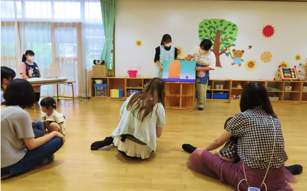 小さいお子さんをお連れの方には子どもが遊べるスペースをご用意しました。靴を脱いでちょっと休憩。学生による絵本の読み聞かせもあります。