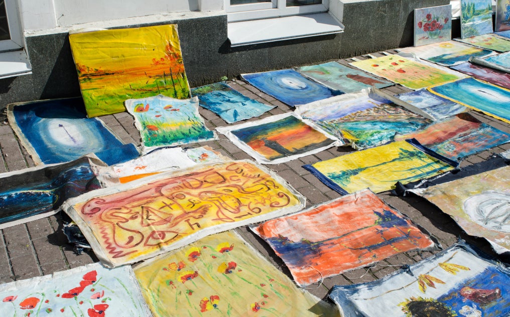 卒業生が出展するアートマルシェ。キーホルダーやぬいぐるみ、Tシャツにハンドメイドのアクセサリー、学食のファンブックなど、本学の卒業生ならではの出展ブースが並びます。