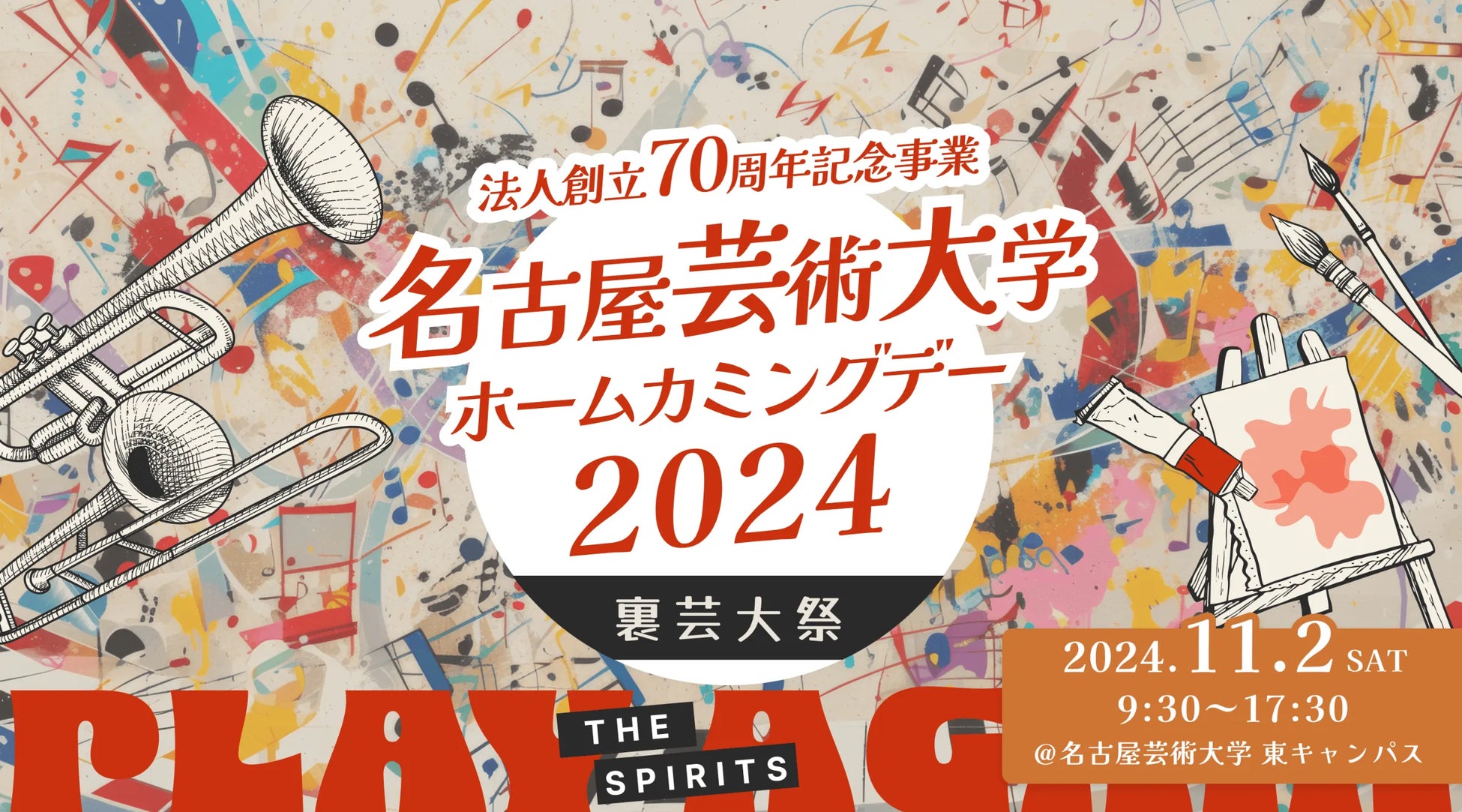 名古屋芸術大学は、卒業生が再び大学に集い、旧友との再会など旧懐と共に新たな刺激や繋がりを作っていただくため、法人創立70周年記念事業としてホームカミングデーを開催します。卒業生以外の来場も歓迎です!!