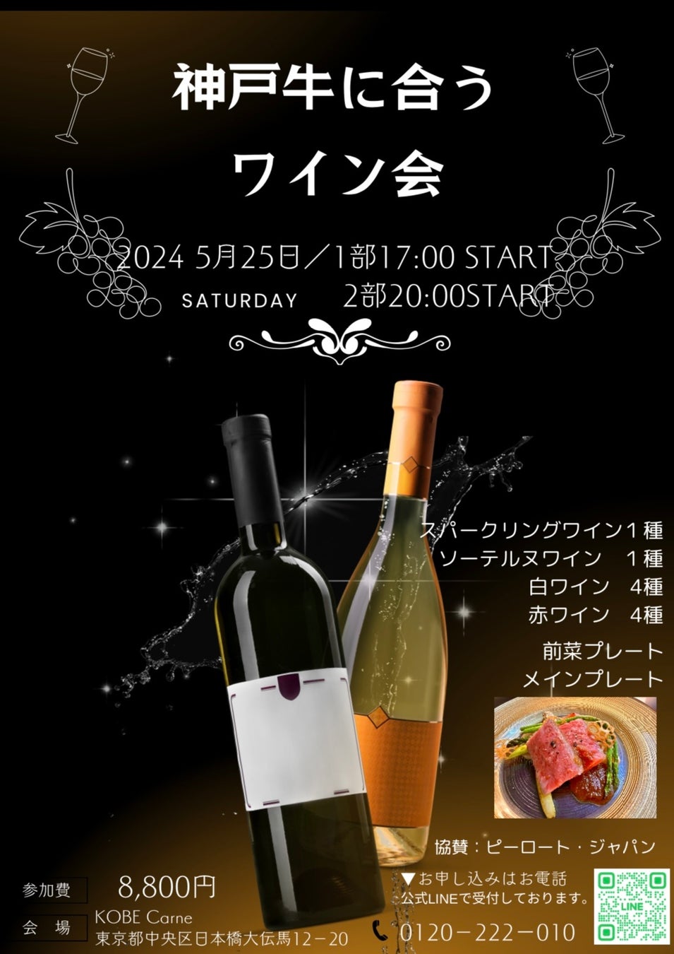 またKOBE Carneが毎月末開催している【神戸牛に合うワイン会】は5月25日土曜日に開催。