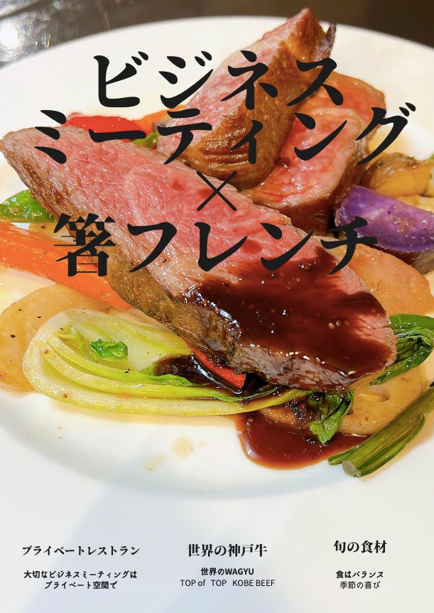 KOBE Carneは〒103-0011 東京都中央区日本橋大伝馬町12−20東京の中心部日本橋で神戸牛を中心に東京ミシュラン2つ星5年連続獲得の某フランス料理店で副料理長として長年修行した料理人Toshiがカジュアルにお箸で食べれるフレンチ【箸フレンチ】として創作しアラカルトは900円からランチコースは4,000円〜・ディナーコースは8,470円から神戸牛が楽しめる【神戸牛と旬野菜のコース】を提供しています。今回ご案内しますのは、大切なビジネスミーティングを最高級神戸牛で食事しビジネスシーンに笑顔でお箸で食べれる【ビジネスミーティング×箸フレンチ】を貸切プライベート空間を提供します(貸切は6名様から)。