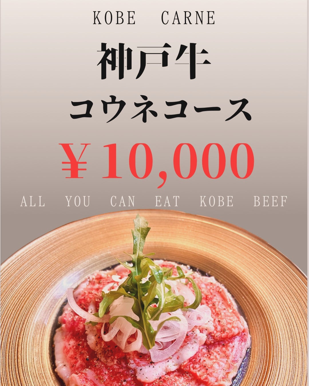 ヨーロッパに移住経験を持つ店主もかつてヨーロッパで飲食店を経営し、ヨーロッパではアルゼンチン産牛が上質な牛肉として高級店では取り扱われ、自身のレストランでもアルゼンチン産牛肉を使用しておりました。食肉卸業者は、アルゼンチン産よりWAGYU(和牛)が1番だと評判は高く、中でもKOBE beef(神戸牛)はヨーロッパ食肉卸業ではもっとも高値で取引されていました。日本に帰国した店主は神戸出身でもあり神戸牛畜産業社と協議を重ね、KOBE Carneの開業を実現しました。