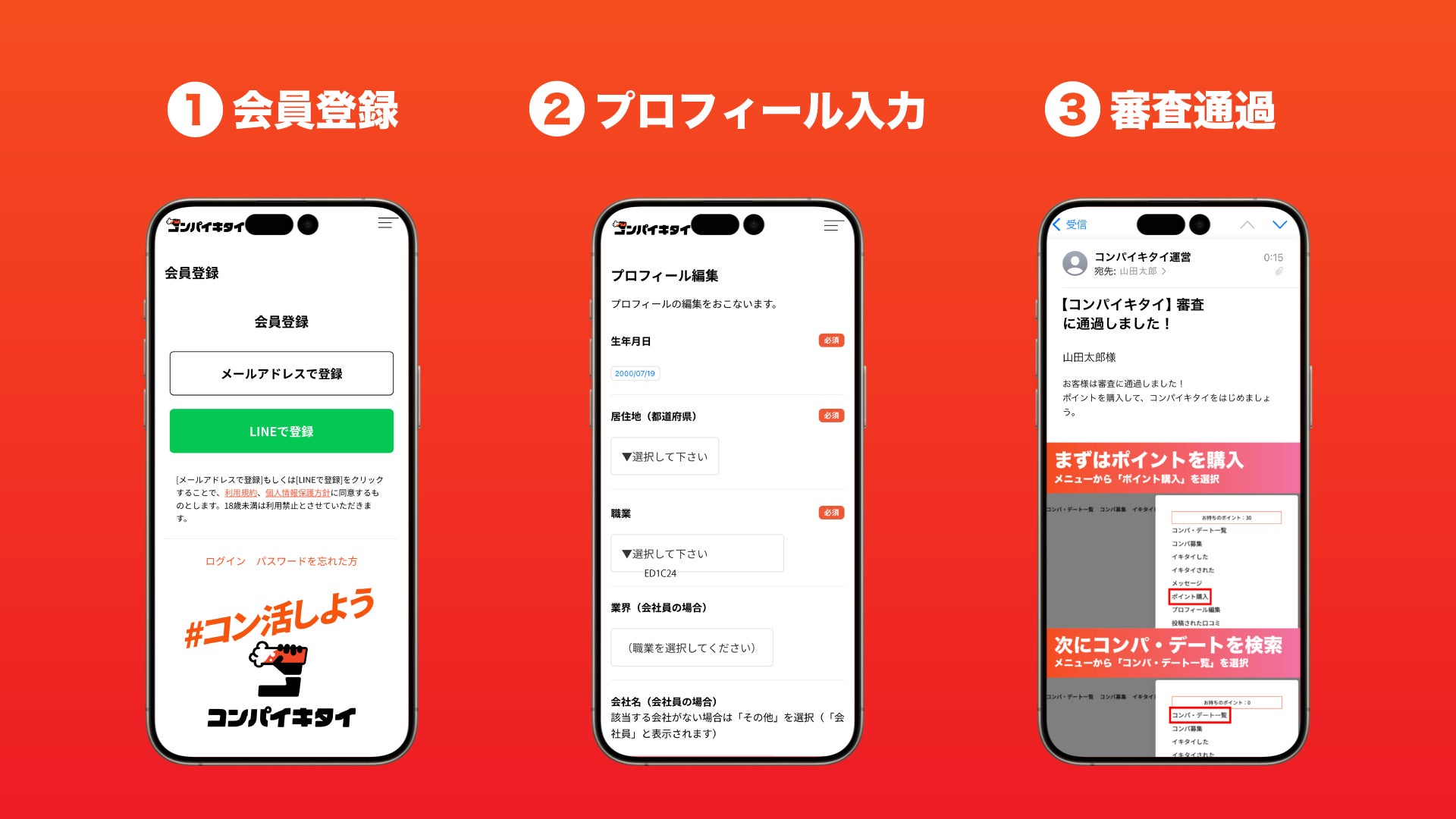 私たちは、恋活・婚活にとどまらず、新しい出会いを多くの人に提供したいという思いで、「コンパイキタイ」を開発しました。