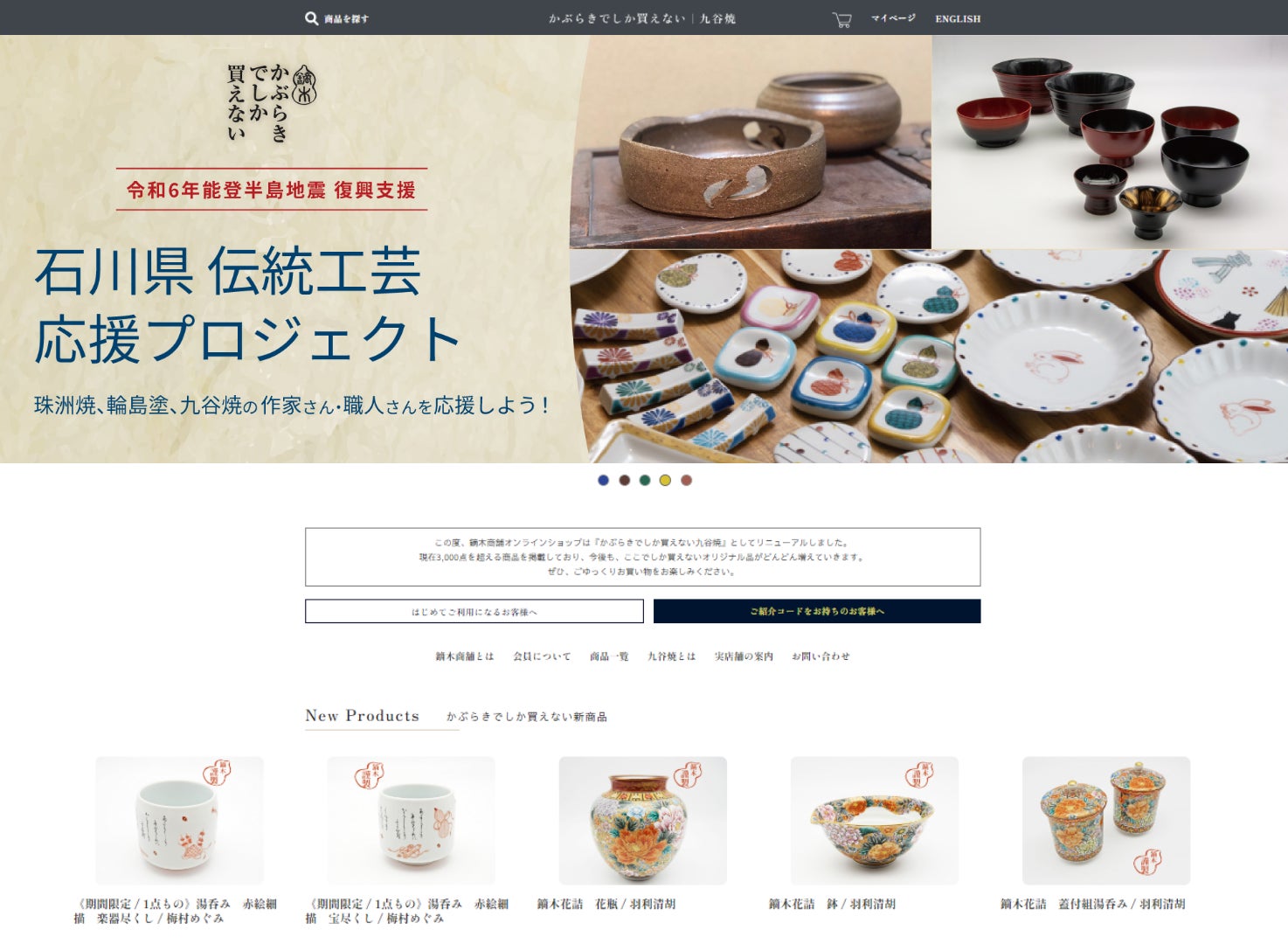 石川県を代表する工芸品である九谷焼の誇り高い伝統を次世代へとつなぐことを目的に、職人たちの唯一無二の作品が購入できる自社ネット販売サイト「かぶらきでしか買えない」を2023年にオープン。(https://kutani.net/)